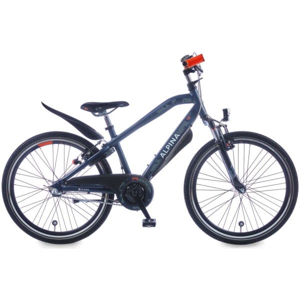 Alpina fiets Trial Jongens, 24inch. Kleur: Classic Blue Matt. Uitgerust met achter een Shimano Nexus remnaaf met 3 versnellingen en V-brakes voor en achter, aluminium frame, inclusief voordrager. Kleurnummer: PMS 282 C Matt.