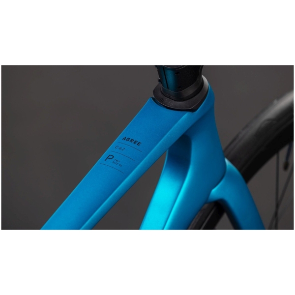 Een goede racefiets is een fiets die past. Niet voor niets brengen we de Agree in zeven maten, van 47 tot 62 centimeter. Met voor iedere maat een perfect geproportioneerd frame, gemaakt van ons hoogwaardige C:62®-carbon. Frames die zo snel zijn als ze eruit zien. De zorgvuldig geprofileerde framebuizen, geïnspireerd door onze high-end wegracers en tijdrijders, glijden in combinatie met de geïntegreerde kabels moeiteloos door de wind. En dat zonder in te leveren op comfort en grip, want het frame biedt plaats aan banden tot 32 millimeter. O ja, check ook de (optionele) fraai geïntegreerde opbergbox onder de bovenbuis even. Handig hè? En geloof het of geloof het niet: hij verlaagt de luchtweerstand ook nog eens!
