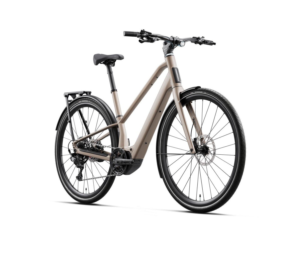 Met dagrijverlichting ben je tot 2,4 keer beter zichtbaar in het verkeer. Het rondomlopende voorlicht vergroot je zichtbaarheid, ook van opzij, terwijl het in de zadelpen geïntegreerde achterlicht ervoor zorgt dat je van achteren duidelijk zichtbaar bent. Beide zijn beschermd tegen stoten en diefstal.